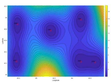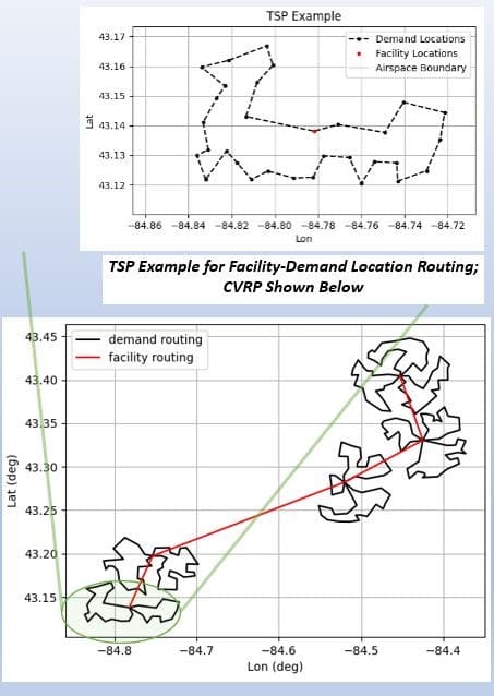 The system analyzes potential mission regions to determine the most effective locations for aircraft deployment while identifying optimal flight routes between survey targets.